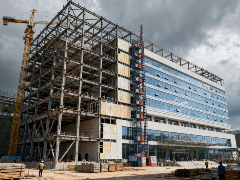 Les bâtiments hospitaliers métalliques préfabriqués de grande hauteur font généralement référence aux bâtiments hospitaliers de plus de 10 étages. Leurs cadres sont composés de poutres en acier et de colonnes en acier, reliées par des boulons ou par soudage. Le matériau principal des bâtiments hospitaliers métalliques de grande hauteur est l’acier. Les bâtiments à structure métallique ont les caractéristiques d'être fermes et stables, d'installation rapide, d'économie d'énergie et de protection de l'environnement, etc. La charpente principale et les autres composants de l'hôpital sont produits et traités en usine. Après traitement, ils peuvent être transportés vers le chantier de construction pour être installés. Les différentes pièces sont reliées par des boulons et certains nœuds doivent être soudés sur place. Ce bâtiment hospitalier est généralement utilisé dans les grands hôpitaux généraux, les bâtiments d'hospitalisation, les bâtiments de recherche, etc.