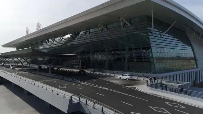 Une grande passerelle internationale de niveau 4E à 30 km du centre-ville. L'expansion de la phase II comprend les installations d'aéroport, le contrôle du trafic aérien, l'alimentation en carburant et les bases de Shandong Airlines et China Eastern Airlines.