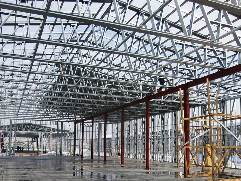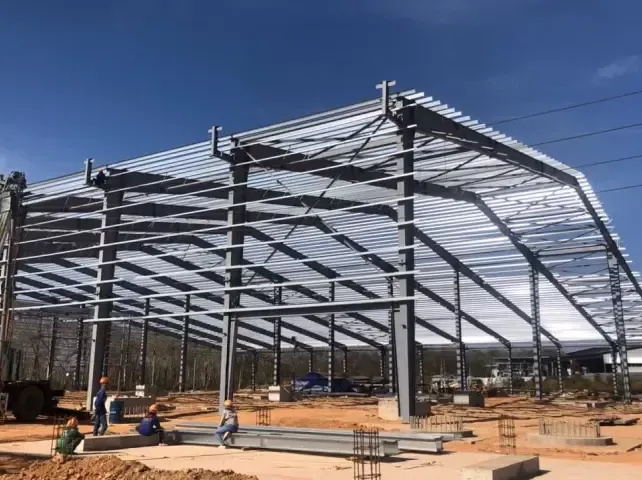 Les composants en acier, y compris les poutres, les colonnes, les accolades et les fermes de toit, sont préfabriqués dans un réglage d'usine en acier de haute qualité. Ces composants sont fabriqués à des spécifications précises, garantissant qu'elles s'associent avec précision et en toute sécurité pendant l'installation. Le processus de préfabrication implique des techniques de génie avancé et de soudage pour garantir la qualité et la durabilité de chaque pièce.