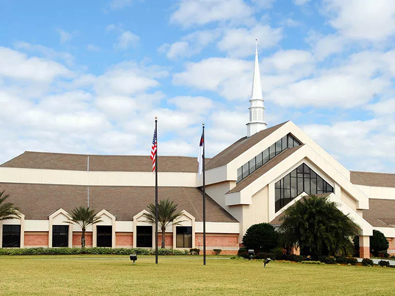 Attrait esthétique: les structures à grande place peuvent être combinées avec de grandes zones de verre pour introduire la lumière naturelle, créant une atmosphère religieuse légère et dynamique. Il se détache des formes d'église traditionnelles et peut être conçu comme des structures rationalisées ou en porte-à-faux, reflétant l'esprit de l'époque.