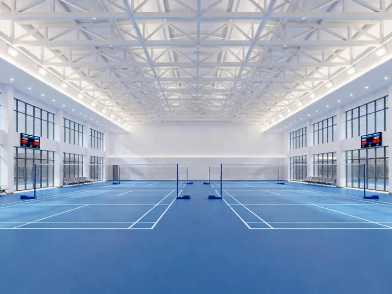Dans le cadre du développement des bâtiments sportifs modernes, la salle de badminton à structure métallique est progressivement devenue la forme structurelle préférée dans la construction de sites de badminton. La structure principale composée de poutres et de colonnes en acier prend en compte la résistance structurelle, l'effet esthétique et les performances économiques, démontrant ainsi les normes des sites sportifs professionnels. En tant que lieu fermé, une salle de badminton doit disposer d'un bon système de ventilation et d'un bon effet d'isolation thermique. Une salle de badminton à structure en acier peut utiliser des matériaux de mur plus respectueux de l'environnement et d'isolation thermique, et des panneaux solaires peuvent être installés sur le toit pour produire de l'électricité pour le système de ventilation.