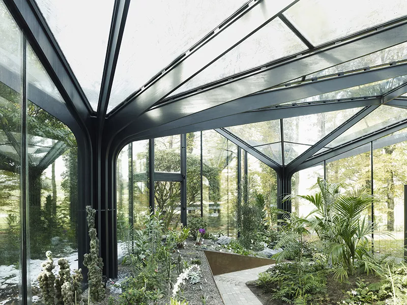 Lumière naturelle : de grandes fenêtres, des lucarnes ou des panneaux de toit transparents sont intégrés à la conception pour fournir suffisamment de lumière naturelle pour la photosynthèse. Cela profite non seulement aux plantes, mais crée également un environnement visuellement époustouflant pour les visiteurs.