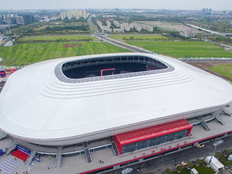 3. The main structure adopts a large-span spatial truss or grid system, creating a column-free open space, ensuring unobstructed views for all spectators and the ability to cover a super-large roof to meet all-weather usage requirements.